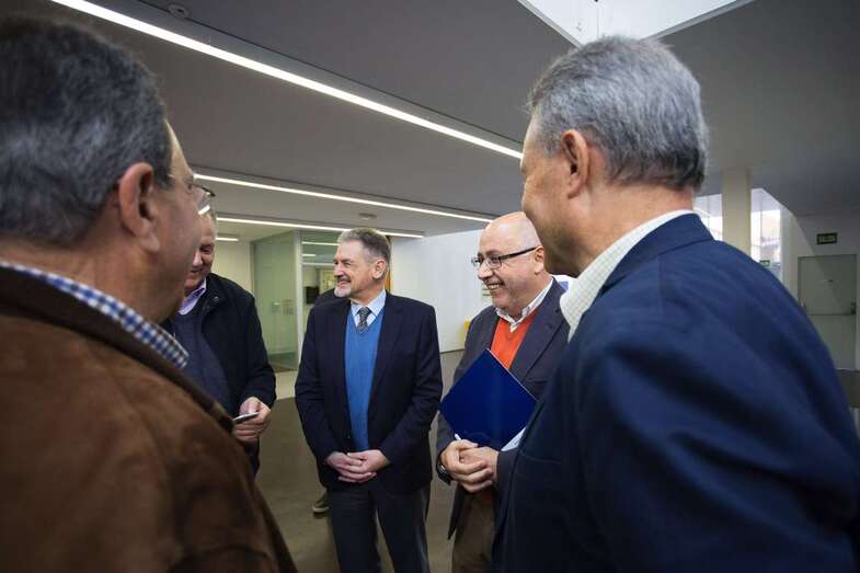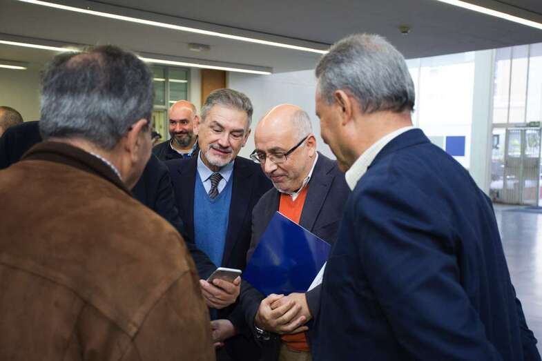 Antonio Morales, acompañado por el consejero de Hacienda y Presidencia, Justo Brito, el presidente de Los Gofiones, Pedro Miguel González, y por el director musical del grupo, Víctor Batista, adelantó asimismo el compromiso del Cabildo en la puesta en marcha del más ambicioso proyecto de los propuestos como celebración de esta efemérides, el Instituto Canario de las Tradiciones, tras las obras de acondicionamiento que se acometerán en breve en el inmueble actualmente cedido a Los Gofiones como sede social.