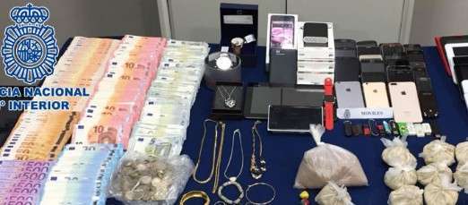 Además, los agentes recuperaron numerosos efectos de ilícita procedencia como teléfonos móviles, tabletas digitales, cosméticos y textiles, sobre los que continúan las gestiones para determinar su procedencia y, de esa forma, devolverlos a sus propietarios.