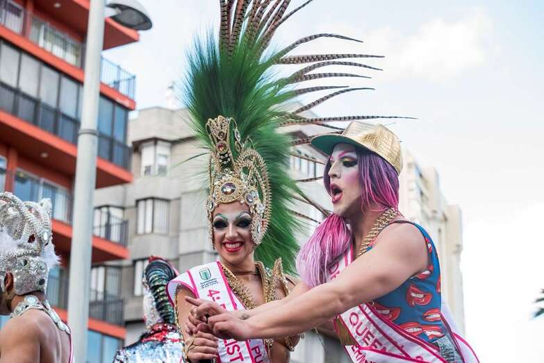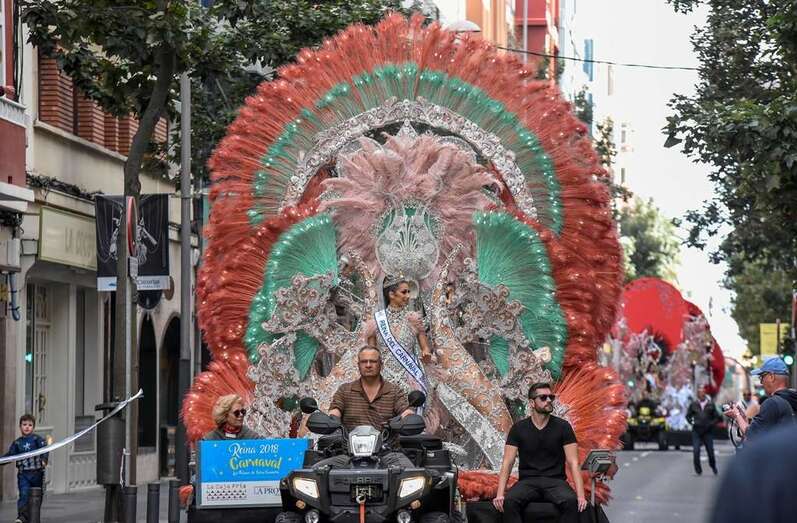 La Reina del Carnaval, Ana Suárez, acompañada de sus damas de honor, ha encabezado el desfile. Tras la Reina más veterana de la fiesta han desfilado las reinonas de la magia y las criaturas fantásticas, con la carroza del Drag Queen de Las Palmas de Gran Canaria, una de las galas más populares de las fiestas.