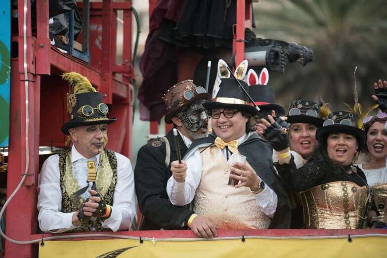 Con una ciudad volcada en el Carnaval, la magia se convertía en el centro y en el tema esencial de la jornada, que avanzó con su más de un centenar de carrozas hacia la zona del puerto, donde continuará la fiesta en el escenario del Parque de Santa Catalina hasta la madrugada.
