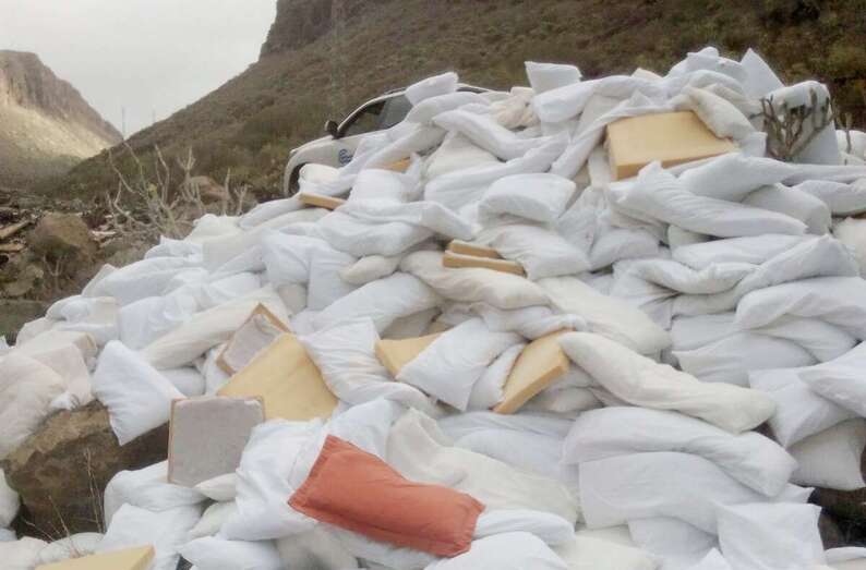 Denuncian a un transportista por abandonar un vertido de almohadas, mantas y edredones en Fataga