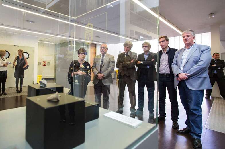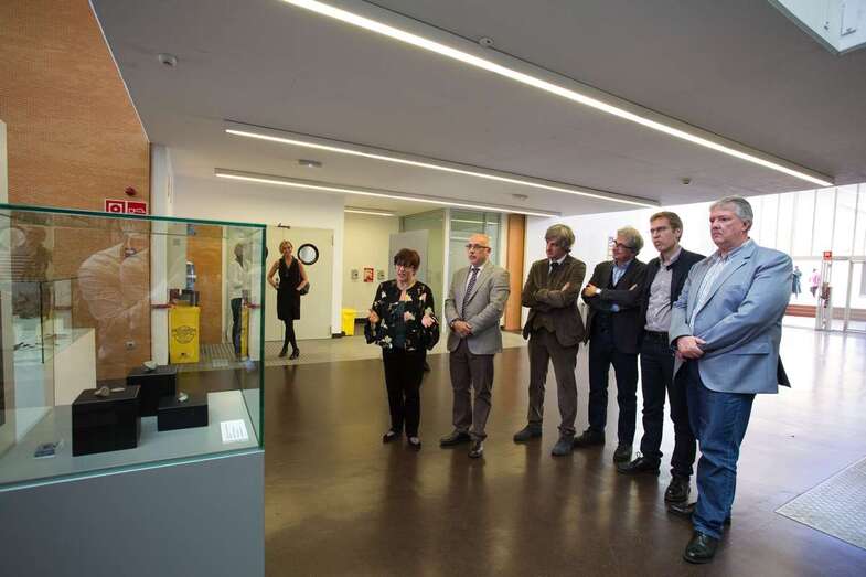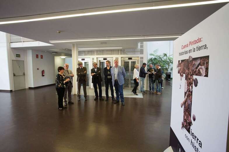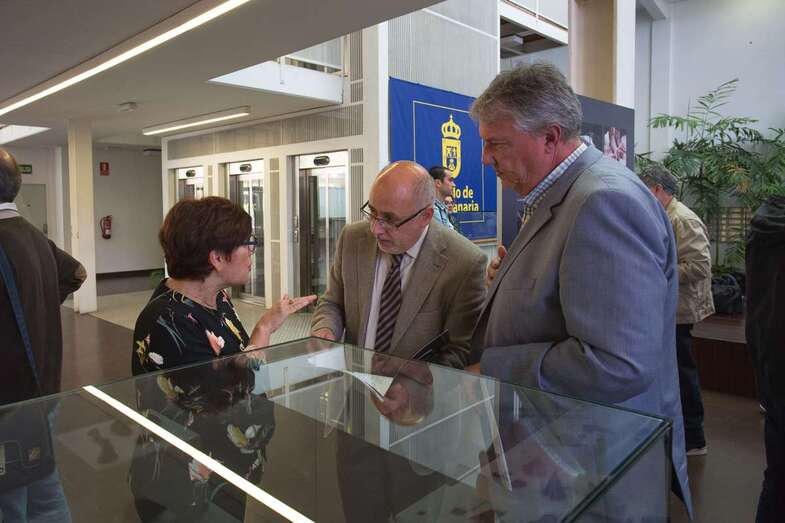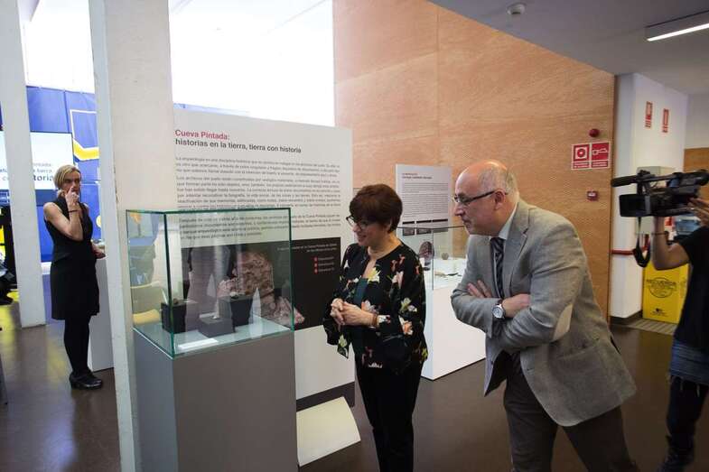 Junto al consejero de Cultura, Carlos Ruiz, el presidente inauguró la exposición ‘Cueva Pintada: Historias en la tierra, tierra con Historia’, una iniciativa para mostrar a la ciudadanía en la propia sede del Cabildo unos resultados que son fruto de la colaboración institucional y técnica entre la Corporación insular grancanaria y la Universidad de Castilla-La Mancha.