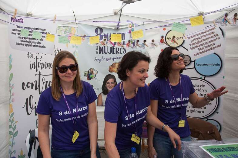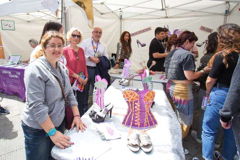La Feria dio comienzo a las 9 de la mañana con un pasacalle anunciador que daba la bienvenida a los visitantes que querían conocer los múltiples proyectos que corporaciones locales, asociaciones comprometidas con la Igualdad y centros educativos que compartieron este día. Paralelamente, se desarrollaron talleres de percusión, de grafiti y de improvisación teatral.
