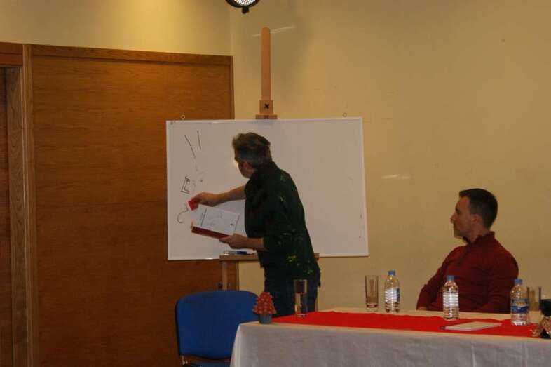 Cabrera hizo una breve reseña del libro, pues fue el propio autor quien lo presentó mediante una charla didáctica con un recorrido por sus diez capítulos ilustrados.
