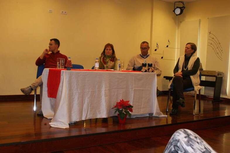 El autor estuvo acompañado en la mesa por Jesús Arenas Ramírez, jefe de Estudios del I.E.S. de Valsequillo; Elvira Vaquero Rodríguez, concejala de Educación y Cultura, Víctor Navarro Delgado, edil de Servicios Sociales y Protección Civil del Ayuntamiento de Valsequillo de Gran Canaria, así como de la cronista oficial del municipio, María Teresa Cabrera Ortega, quien presento al autor.