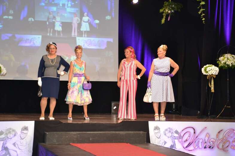 Durante el acto hubo un desfile de un grupo de vecinas que vistieron prendas y lucieron peinados y maquillajes de las últimas siete décadas para mostrar los contrastes que las tendencias han ido dejando con el paso del tiempo y hacer un recorrido por las diferentes modas que han seguido los habitantes del municipio desde los años 50.