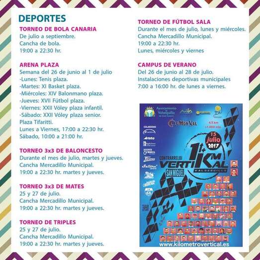 Programa de la campaña Vive tu verano en Valsequillo-Sarantón 2017