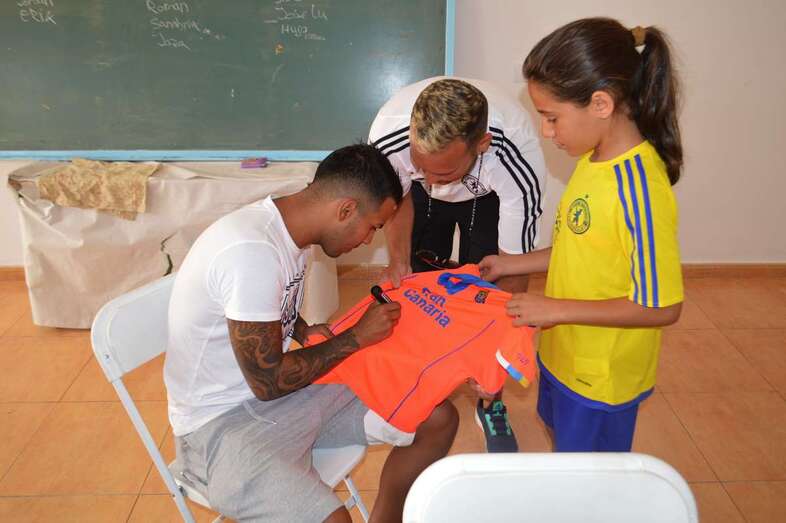Valsequillo.- Los menores que participan en el Campus Deportivo de Verano de Valsequillo se llevaron este martes una grata sorpresa. Jonathan Viera, el mediapunta de la Unión Deportiva Las Palmas, visitó este martes a la chiquillería haciendo las delicias de los más futboleros.