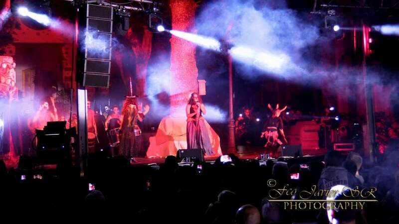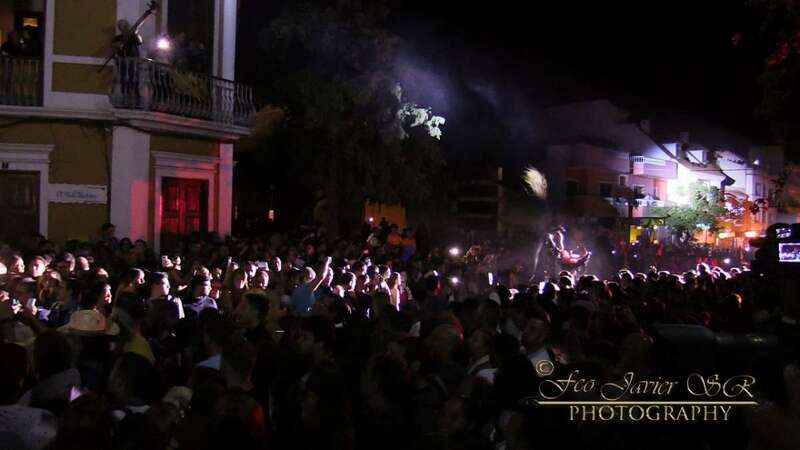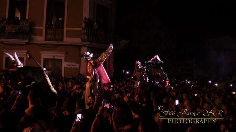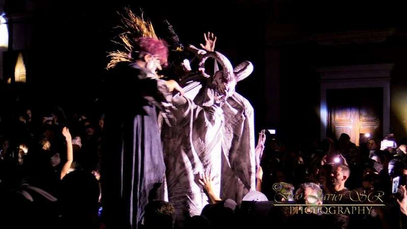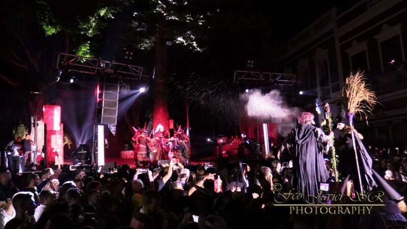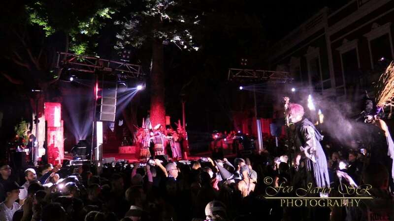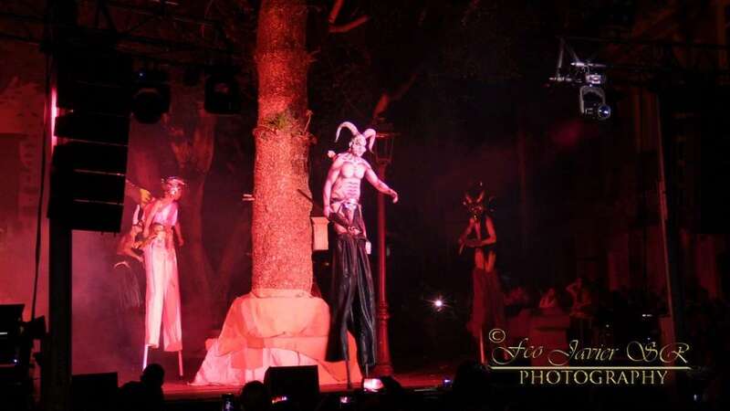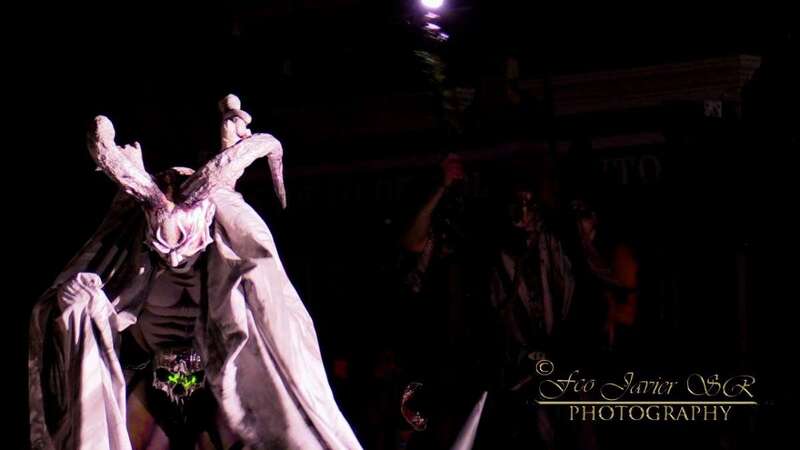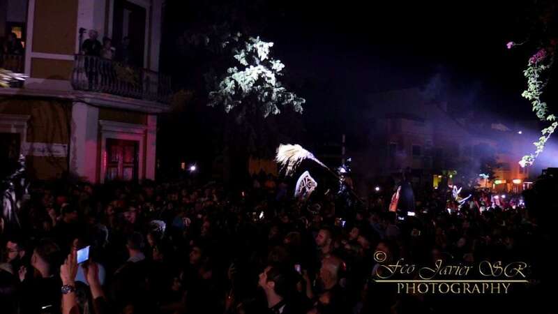 Pasada la medianoche, se apagaron las luces y aparece el diablo en forma de perro. En esta ocasión lo hizo de forma diferente, en zancos y como marca la tradición rodeado de brujas, demonios, zancudos, entre otros personajes.