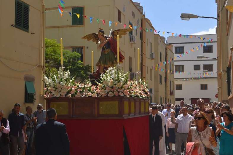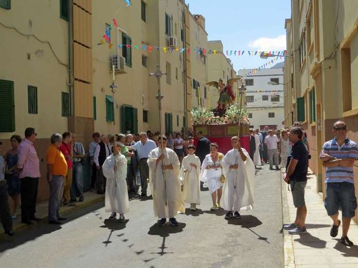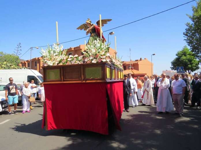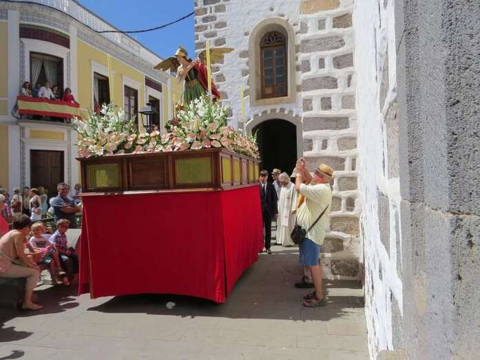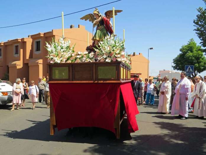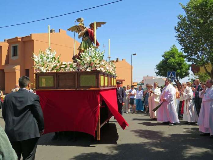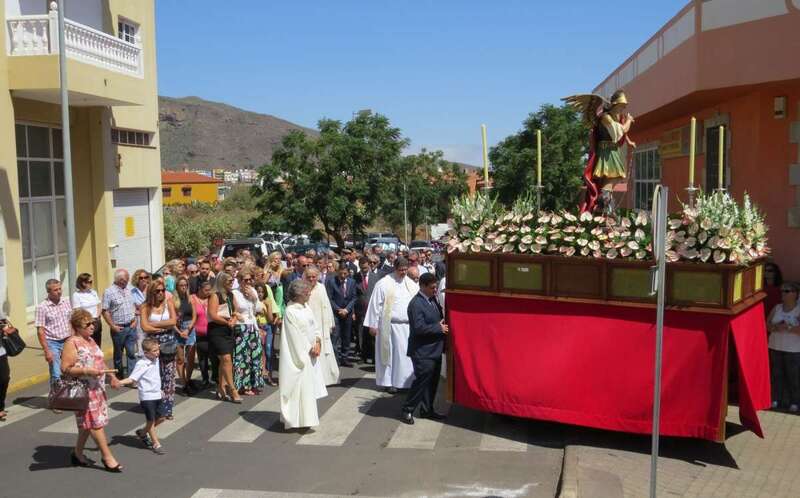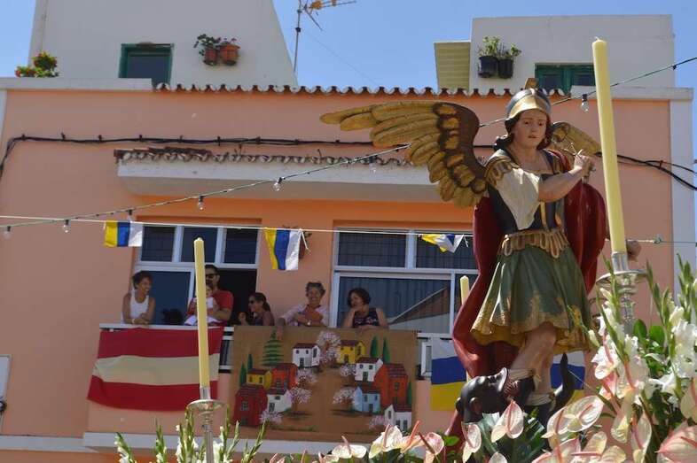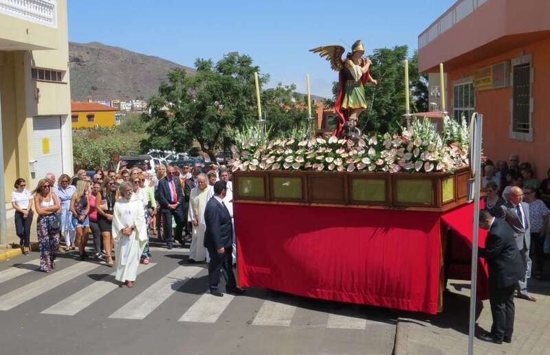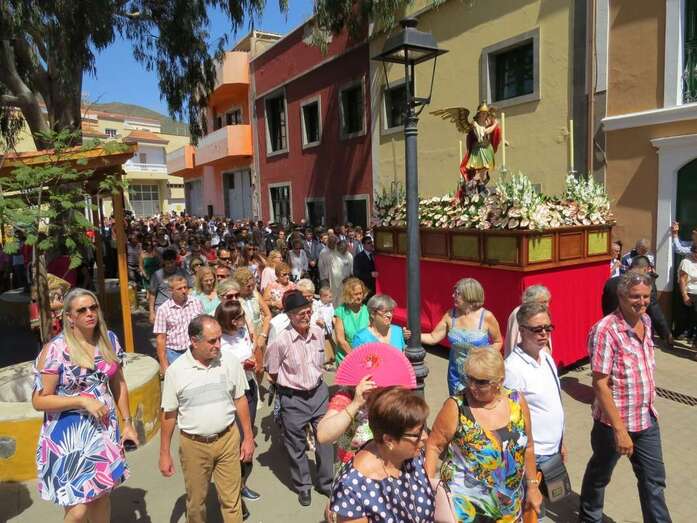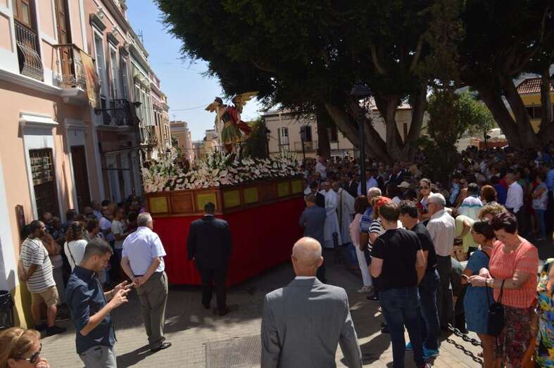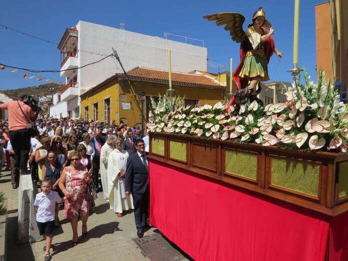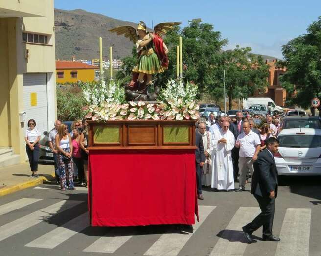 Telde.- La imagen del arcángel San Miguel, patrón de Valsequillo, recorrdió este viernes las calles del casco del municipio en el primer paso construido íntegramente en Canarias. También por primera vez, una veintena de costaleros han cargado con la imagen del patrón del municipio, resultado de la propuesta realizada por jóvenes de Valsequillo al párroco local, Jorge Hernández.