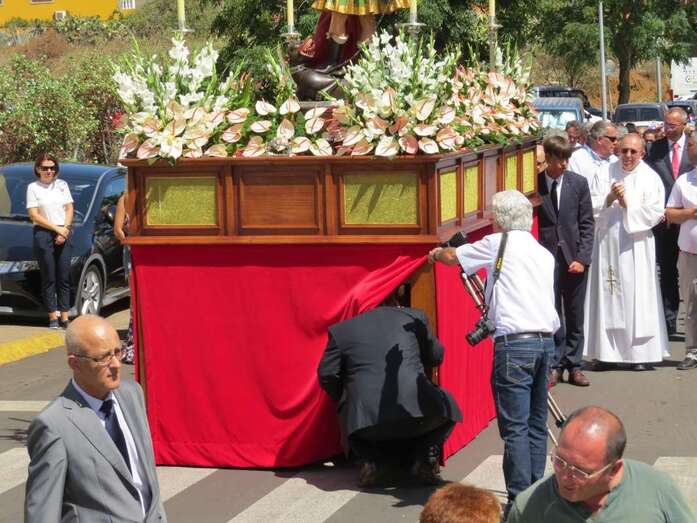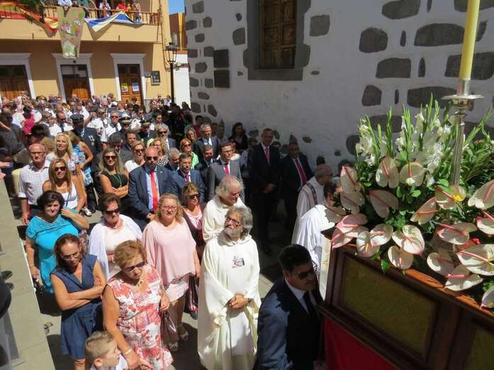 Autoridades políticas e institucionales de toda la isla se dieron cita en Valsequillo para acompañar a la Corporación municipal, encabezada por el alcalde, Francisco Atta, y una multitud de valsequilleros, que en varios centenares acompañaron el recorrido de la imagen del patrón por las principales calles del centro histórico y cultural del municipio.