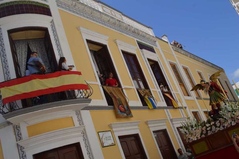El fervor y la pasión del momento alcanzó su clímax cuando desde varios balcones se entonaron folías en honor a San Miguel, que fueron acompañadas de fuertes ovaciones por parte de os asistentes.