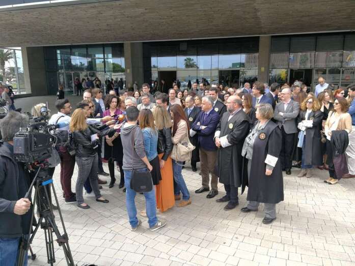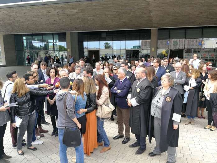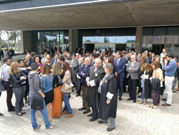 En Las Palmas de Gran Canaria más de medio centenar de jueces y fiscales se han concentrado ante la sede de la Ciudad de la Justicia, donde el presidente de la Audiencia Provincial, Emilio Moya; la fiscal jefe, Beatriz Sánchez; y el juez decano de Las Palmas de Gran Canaria, Óscar González, han dado lectura a un manifiesto consensuado entre las cuatro asociaciones judiciales y las tres de fiscales que recoge más de una veintena de medidas a implantar mediante un plan global a desarrollar en los próximos años.