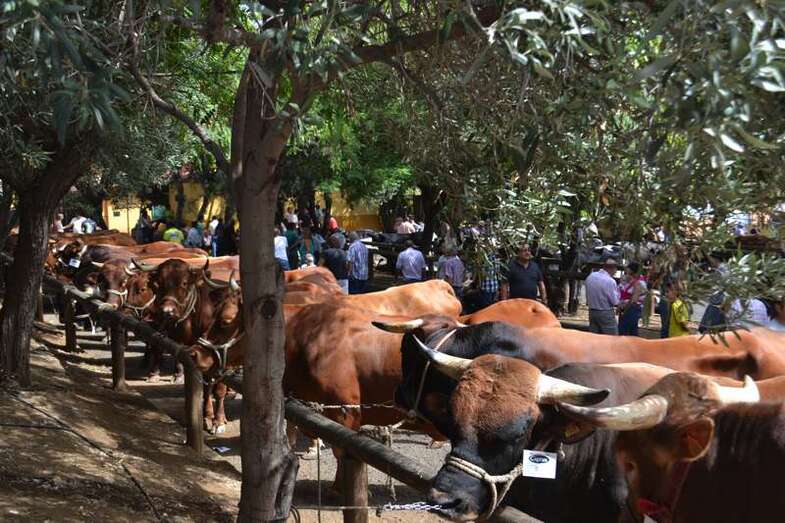 Desde primera hora de la mañana comenzaban el guineo en el casco de Valsequillo con la llegada de las vacas, toros, cabras, ovejas y caballos que participaron en la feria de ganado.