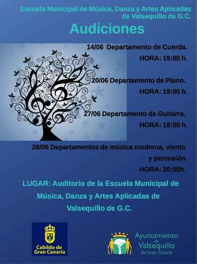 Valsequillo.- La Escuela Municipal de Música, Danza, Teatro y Artes Aplicadas de Valsequillo ha preparado todo un calendario de audiciones y conciertos para clausurar el curso 2015/16. Este programa de actos comenzará hoy martes, 14 de junio, con la audición del departamento de cuerda en el auditorio del Centro Cívico del municipio.