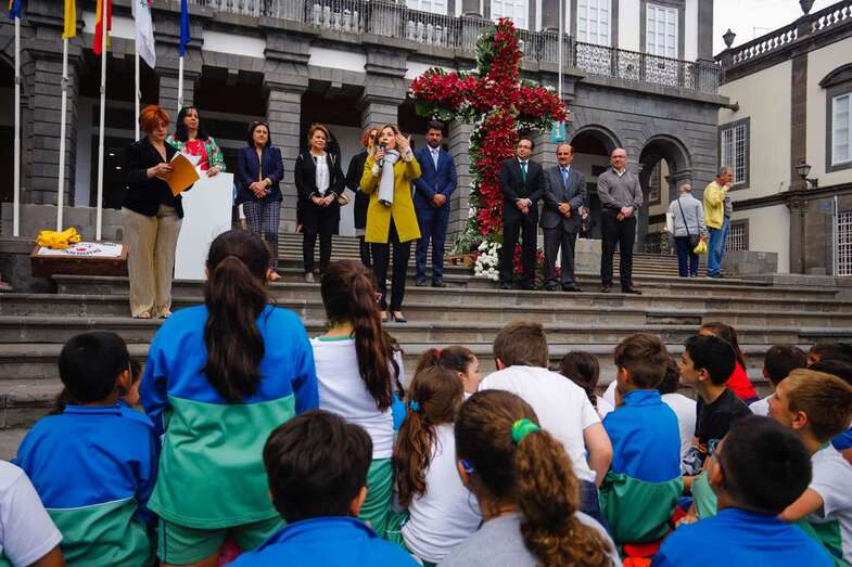 Los escolares y el resto de colectivos han elaborado 15 cruces fabricadas con flores y materiales reciclados que posteriormente ha valorado un jurado del que formaba parte, entre otros, el cronista oficial de Las Palmas de Gran Canaria, Juan José Laforet. Durante el concurso, los alumnos han podido disfrutar de un desayuno saludable y varias actuaciones de animación gracias a la colaboración de las empresas Hiperdino, Tirma, Pasteror, Aguas de Firgas y el Mercado de Vegueta.