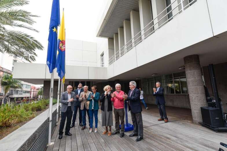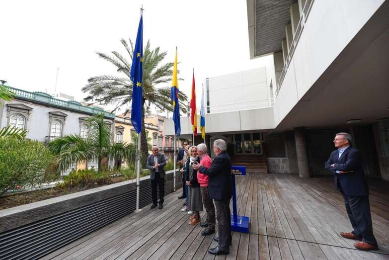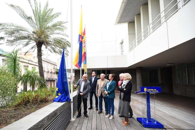 La Institución insular izó hoy la bandera europea en un acto que contó con representantes de diversos grupos presentes en el Cabildo, a cuyas puertas el presidente leyó un manifiesto en el que recordó “las grandes apuestas que hicieron de este proyecto una ilusión de los demócratas de los distintos estados y pueblos que la conforman”.