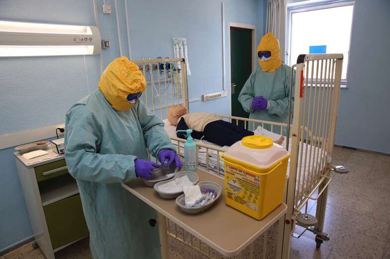 A partir de ahí se recreó la evacuación de un militar por parte de un helicóptero de Salvamento Marítimo y la asistencia sanitaria a un bebé con riesgo de padecer una enfermedad infecciosa de alto riesgo: peste.