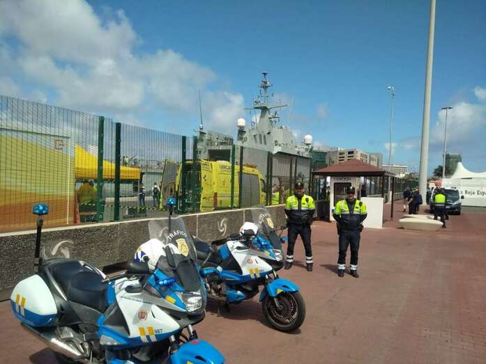El barco en cuestión fue conducido hasta el Puerto de La Luz y de Las Palmas, en donde atracó. Y hasta allí se desplazaron doce profesionales del Servicio de Urgencias Canario (SUC) –entre médicos, enfermeros y técnicos sanitarios– en dos VIR (Vehículos de Intervención Rápida), una ambulancia de soporte vital básico y la UMCAT (Unidad Móvil de Catástrofes) para efectuar la asistencia sanitaria de los supuestos afectados a bordo del barco interceptado.