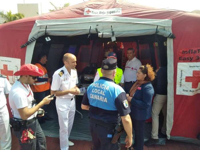 Para ello se instaló un puesto médico sanitario con el material necesario para realizar el triage y asistencia de los supuestos heridos, varios con traumatismos, y coordinar su traslado a un centro sanitario. Además, y con el fin de poner a prueba el protocolo correspondiente, se simuló el traslado del menor con sospecha de una enfermedad contagiosa hasta el Complejo Hospitalario Insular Materno Infantil de Canarias.