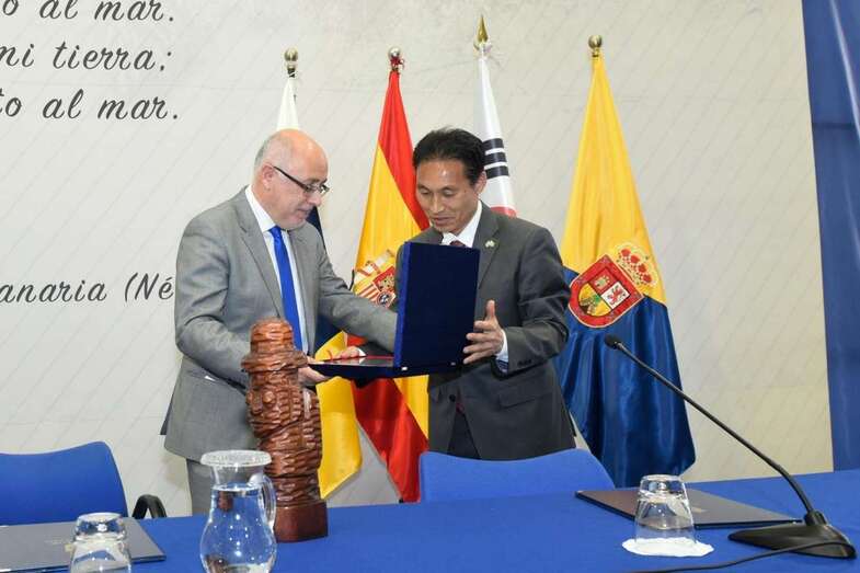 Tanto el presidente como los representantes coreanos que acudieron al acto mostraron su satisfacción por esta llamativa acción que abrirá un hueco a Gran Canaria en el territorio de Corea que se suma al que ya tiene en sus corazones por formar parte de su historia.