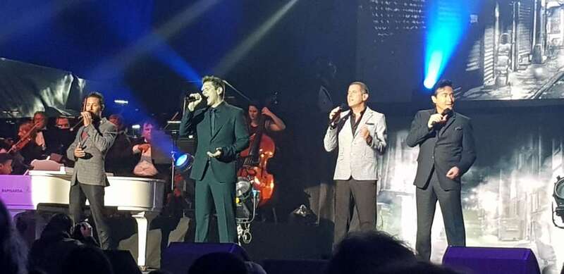 Este es un año muy especial para Il Divo porque cumple quince años en el escenario y entre tema y tema, engarzaron una canción especial para cada uno, en el caso de Bühler, la que hizo que un niño que creció rodeado de música clásica cayera rendido ante la ópera gracias a los personajes de la Flauta Mágica de Mozart, y en el de Marín, la que imprime su debilidad por Granada, a la que cantó en una escenografía de fuego y pasión que encandiló al público junto al cuerpo de baile que los acompañó en su recorrido musical por el tiempo y el espacio, siempre ante imágenes de Roma, París o cualquier evocadora imagen para sus acordes.