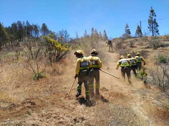 Seguidamente se procedió al despliegue de efectivos en distintas zonas de la cumbre de San Mateo que ya fueron afectadas por el incendio del pasado año. Así, la UME avanzó por Los Marteles, mientras que la unidad Bravo del Cabildo de Gran Canaria por la zona de la Sepultura del Gigante.