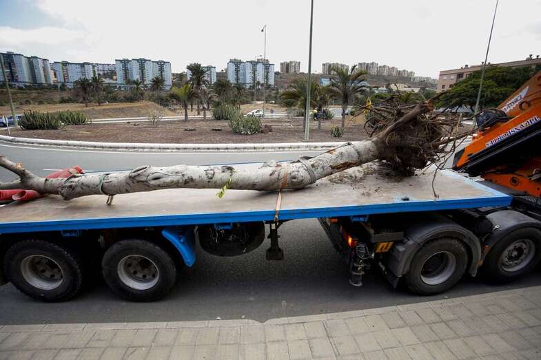 El área de Parques y Jardines, que dirige la concejala Inmaculada Medina, tomó hoy mismo la decisión del traslado de este ejemplar tras considerar los técnicos que el apuntalamiento del árbol para devolverle la verticalidad, como se propuso en un principio, es incompatible con el buen desarrollo de las obras del tramo Mesa y López del sistema 'bus rapid transit' de la ciudad, o MetroGuagua.