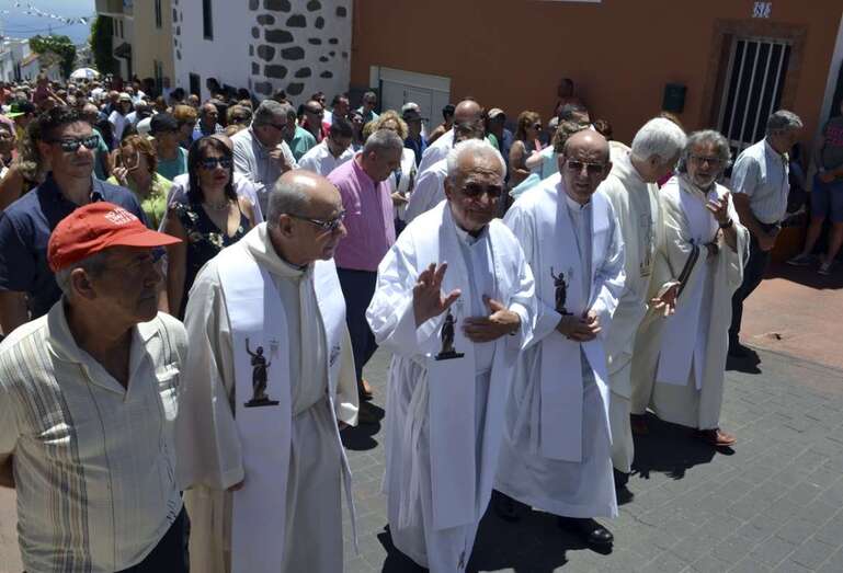 Unos festejos especiales que este año celebraron el 75 aniversario de la creación de la parroquia de San Juan Bautista de Tenteniguada, ya el año pasado se conmemoró el centenario de la construcción e inauguración del templo de la iglesia de San Juan Bautista (1917-2017). Una Iglesia construida por los propios vecinos en la que hoy ha celebrado la misa en honor al patrón, presidida por el Vicario de la Diócesis de Canarias, Hipólito Cabrera. Tras la eucaristía tuvo lugar la procesión a la que siguió el desfile de ganado local.