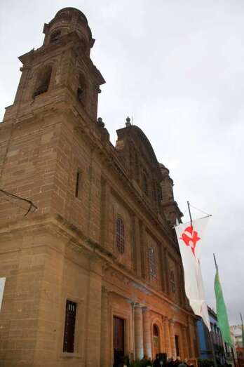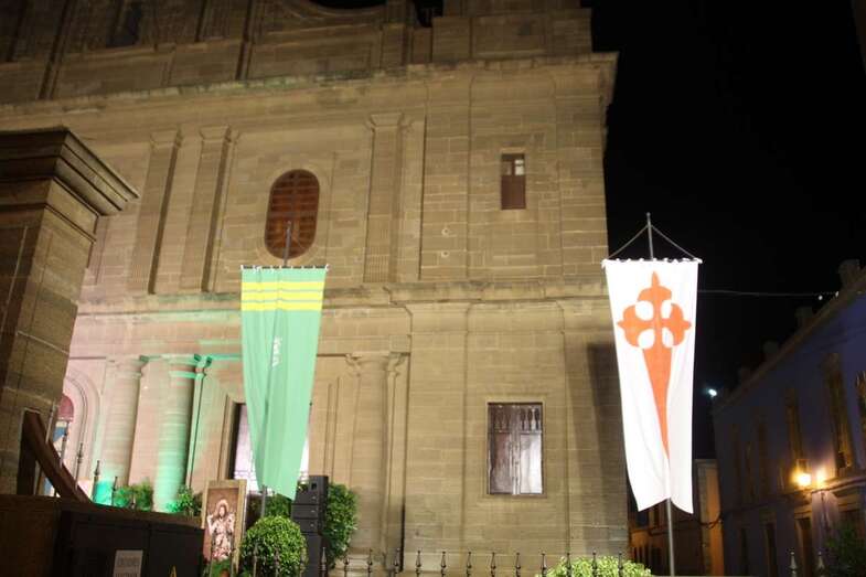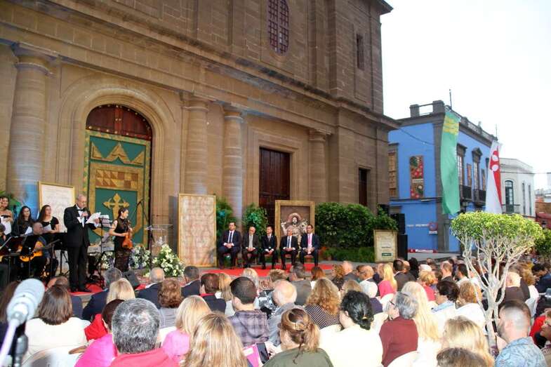 Desde esta plaza central, al pie de la neoclásica fachada del templo matriz de Santiago de los Caballeros, escenario de los actos que centran el Pregón impartido por el empresario D. Sebastián Grisaleña Sánchez, y ante las personalidades representantes institucionales: Alcalde de Gáldar, D. Teodoro Sosa Monzón. Sr. Presidente del Cabildo de Gran Canaria, D. Antonio Morales Méndez.