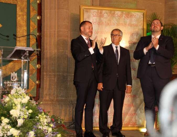 Segundo, porque en esta vida no bastan solo las declaraciones y buenas intenciones por importantes que sean, es necesario, sin duda, la acción. Y en muchas ocasiones, y esta noche es una de ellas, mi amigo Grisaleña, me ha demostrado con acciones, la ilusión, el entusiasmo y el amor que profesa a esta Gáldar y a su gente. Un valor que me inspira la mayor de las confianzas hacia su persona. Y esta es, precisamente, la tercera razón, la razón más personal ligada al aprecio y al enorme cariño que le tenemos en Gáldar, como paisano de este municipio y, más aún, porque veo en él, el orgullo que siente al hablar de sus orígenes que, al igual que a mí y a tantos galdenses, nos llena el alma y no podemos ni queremos evitarlo.