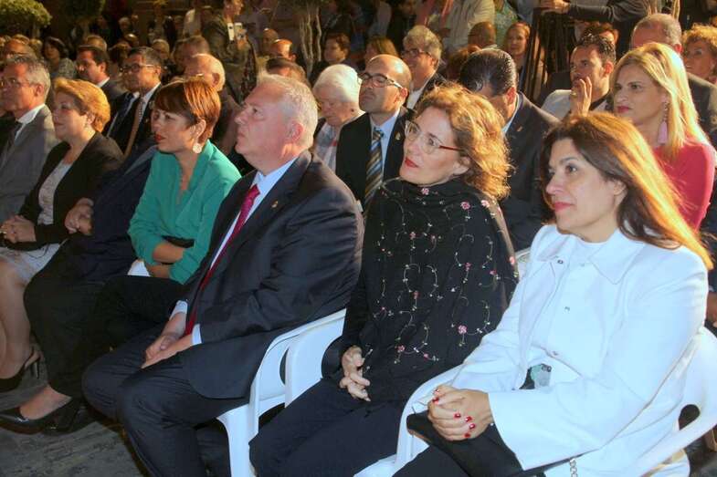 Gracias también a todos los presentes por acudir a la apertura de las fiestas. Veo entre ustedes muchos amigos y rostros conocidos. Yo digo que merece la pena compartir este momento que constituye para mí una gran responsabilidad. Cuando recibí la llamada de nuestro alcalde anunciándome el acuerdo, con toda sinceridad, pensé tantas cosas en tan pocos segundos, alegría, sorpresa, responsabilidad, esa noche que normalmente suelo dormir bien, tengo la conciencia tranquila, me costó ante tal distinción.