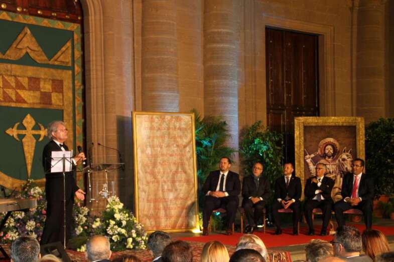Todas estas iniciativas son las que nos hacen diferentes y mejores, y no me olvido de nuestra Banda Municipal de Música y Los Cebolleros. Dejo para el final, la Cueva Pintada, el yacimiento arqueológico más importante de Canarias y que la Asociación Cívico Cultural La Solana-El Plátano ha impulsado con la colaboración de la Dirección General de Patrimonio y Cultura del Gobierno de Canarias, determinar donde reposan los restos mortales de Tenesor Semidán Fernando Guanarteme. Es un estudio histórico arqueológico realizado para la organización y exhumación de los restos mortales en la ermita de San Cristóbal de La Laguna, y transcribo algunos extracto del acuerdo al que llegó el equipo de investigación coordinado por un buen amigo de los galdenses e Hijo Adoptivo de nuestra ciudad, el amigo Jorge Onrubia Pintado, que hoy también nos acompaña. Gracias por acompañarnos Jorge.