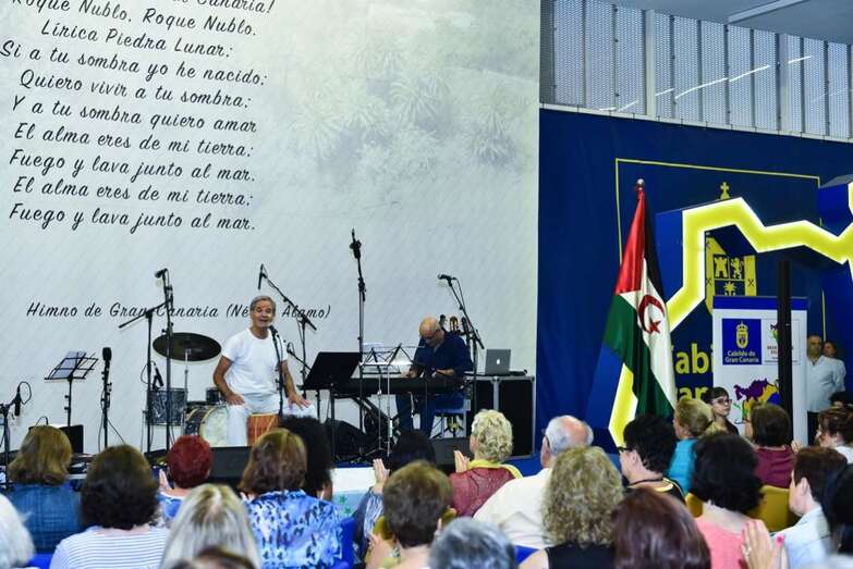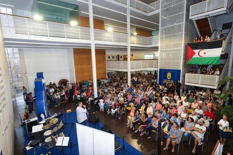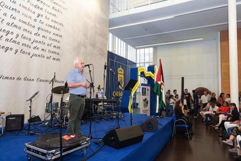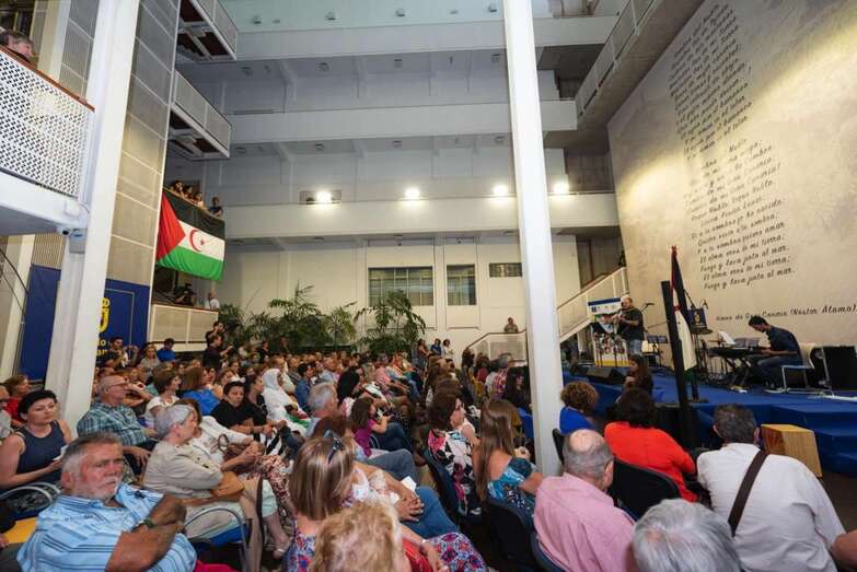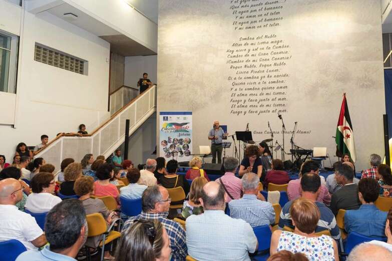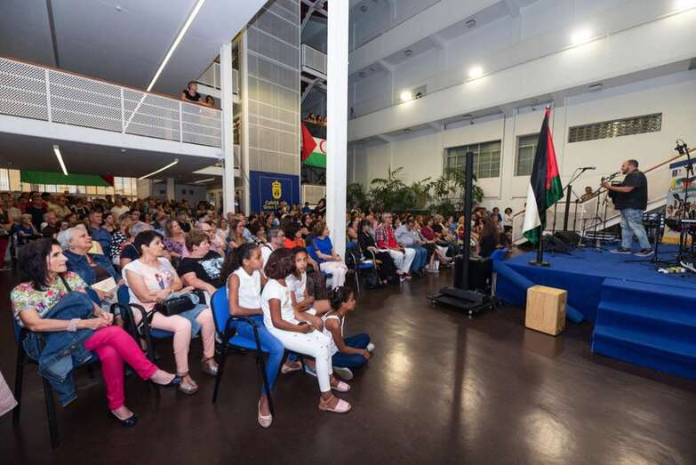 El delegado del Frente Polisario en Canarias, Hamdi Mansu, agradeció el apoyo de Gran Canaria a su lucha y también el de los artistas que con sus poesías y canciones dan voz a un pueblo oprimido “que sufre una invasión salvaje”.