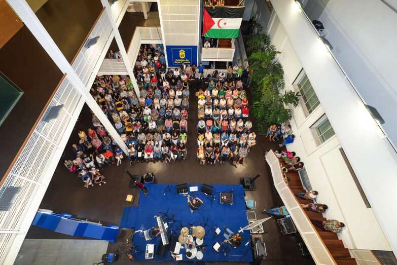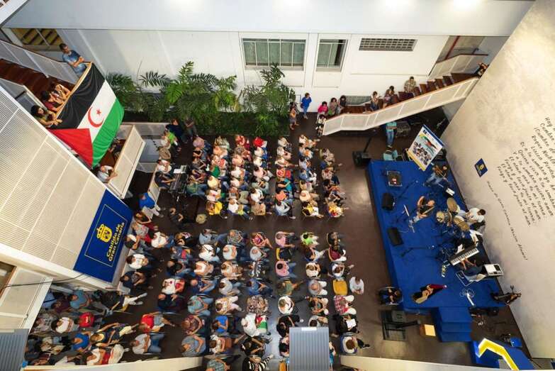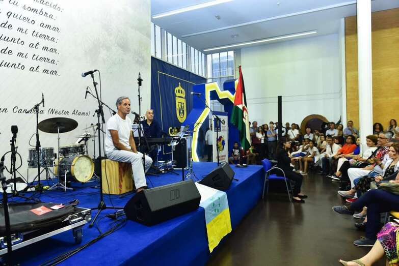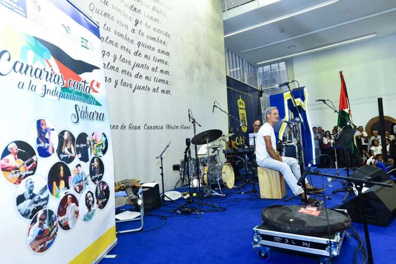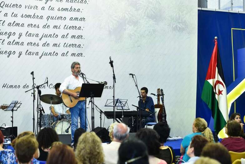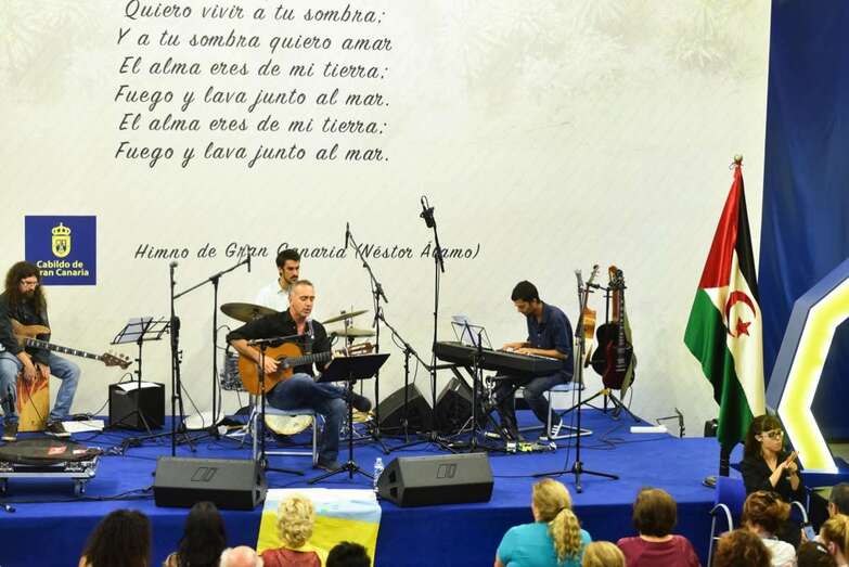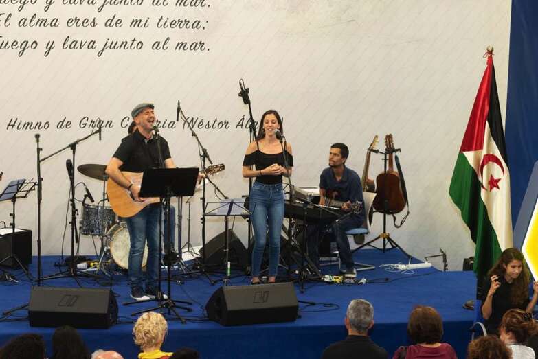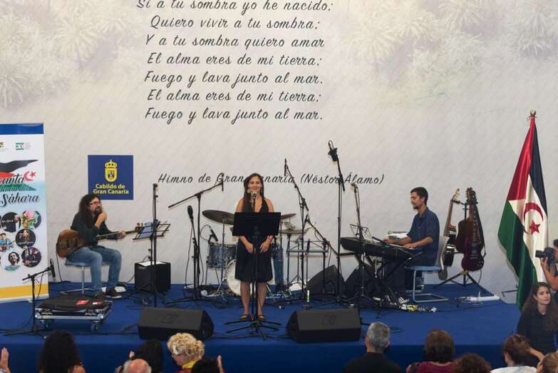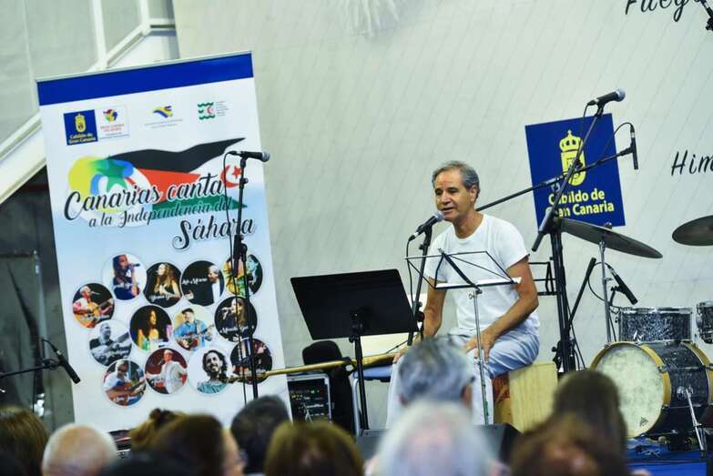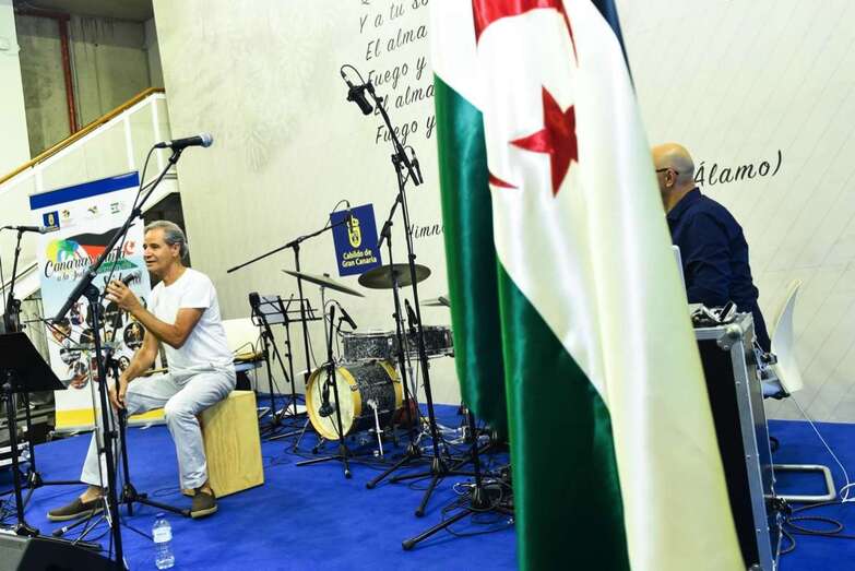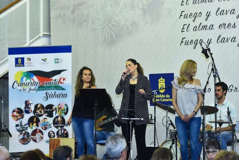 Los cantantes que conformaron el cartel del acto enmarcado en el programa Gran Canaria Solidaria fueron uno a uno alzando la voz para reclamar libertad. Desde el cantautor teldense Rubén Rodríguez con Desde Tinduf hasta Jessica Casal que entonó La maza de Silvio Rodríguez para reflejar el compromiso que deben tener los artistas en la lucha contra las injusticias.