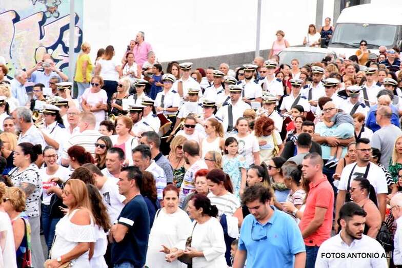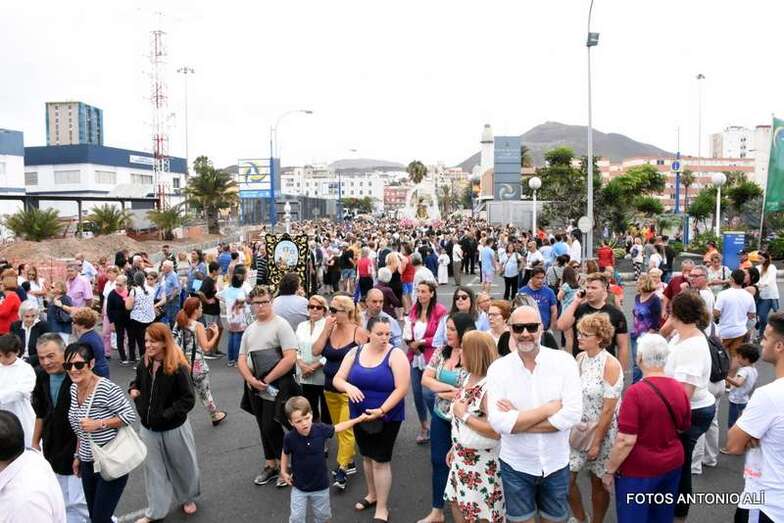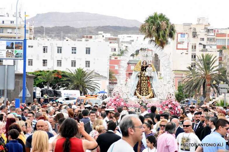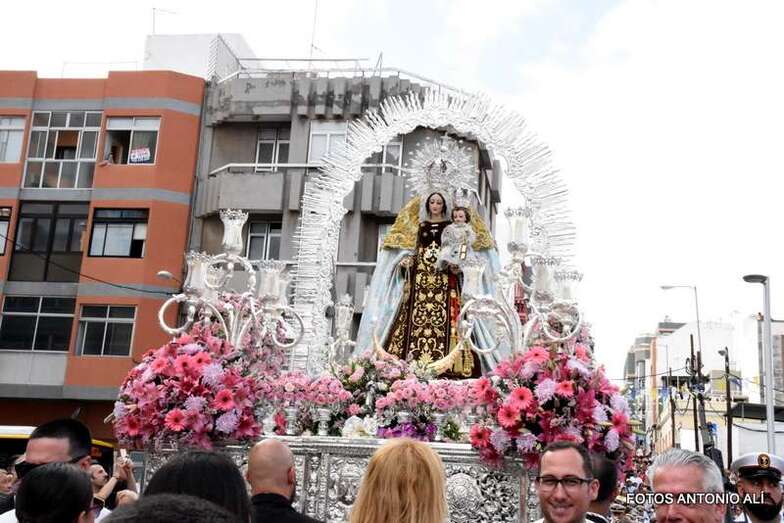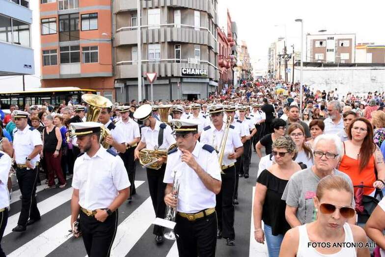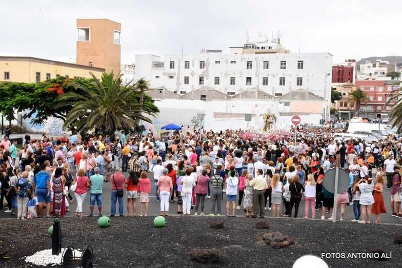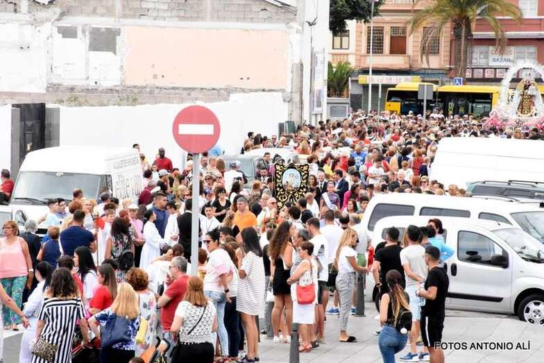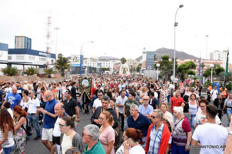 Antes de las 17.00 horas, los alrededores de la parroquia de la calle Benartemi ya se llenaban de fieles que no querían perderse la salida de la imagen, portada por sus costaleros. Una vez en la calle, la Virgen inició el camino que cada primer domingo, tras el día del Carmen, la acerca al Puerto de La Luz para protagonizar el embarque que la lleva a navegar por la bahía de la ciudad, según publica Canarias7.