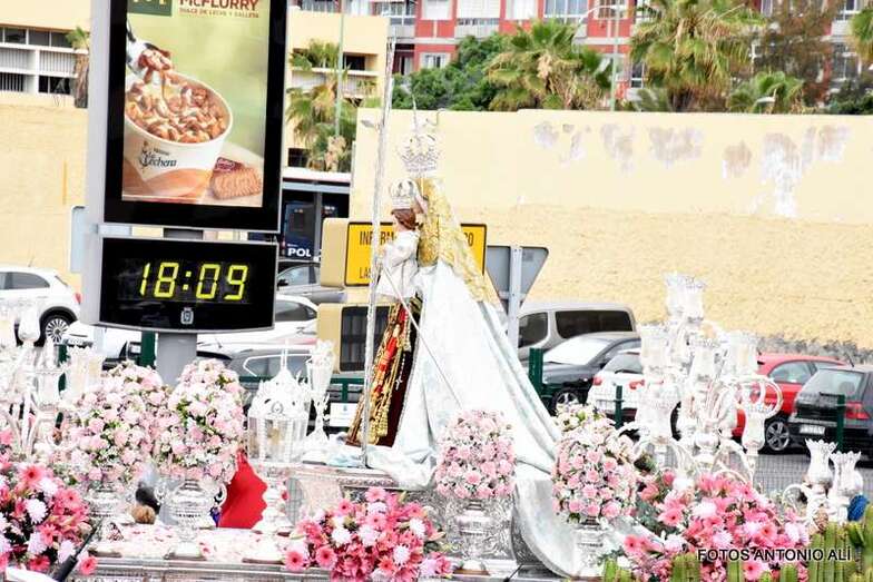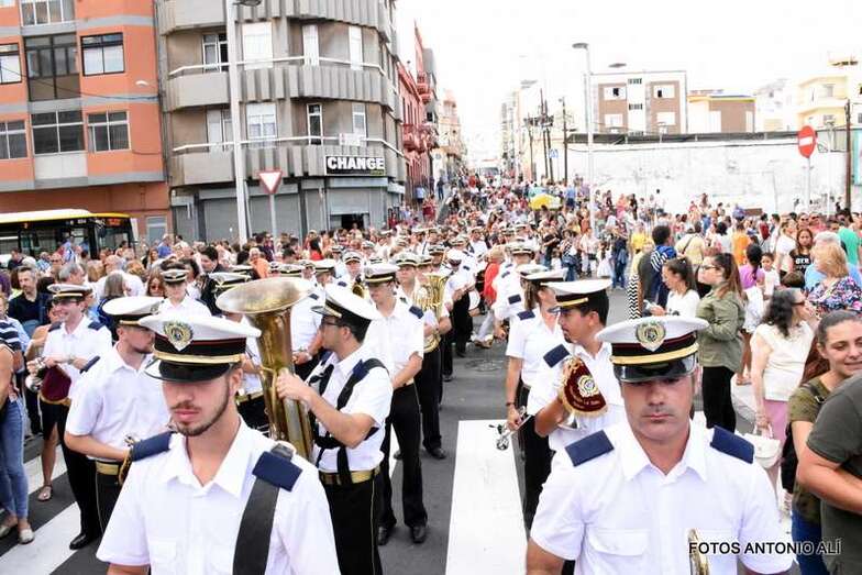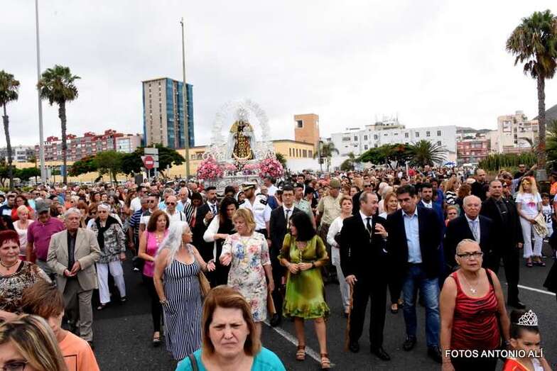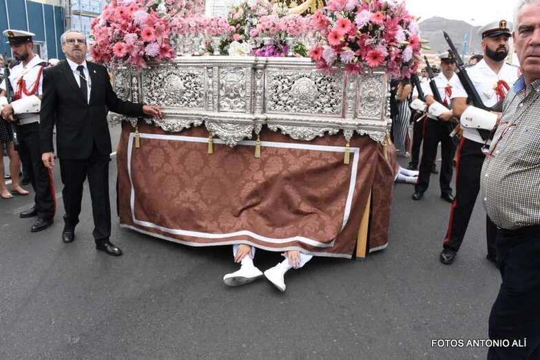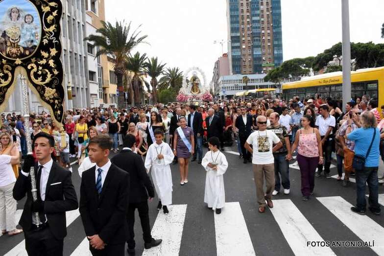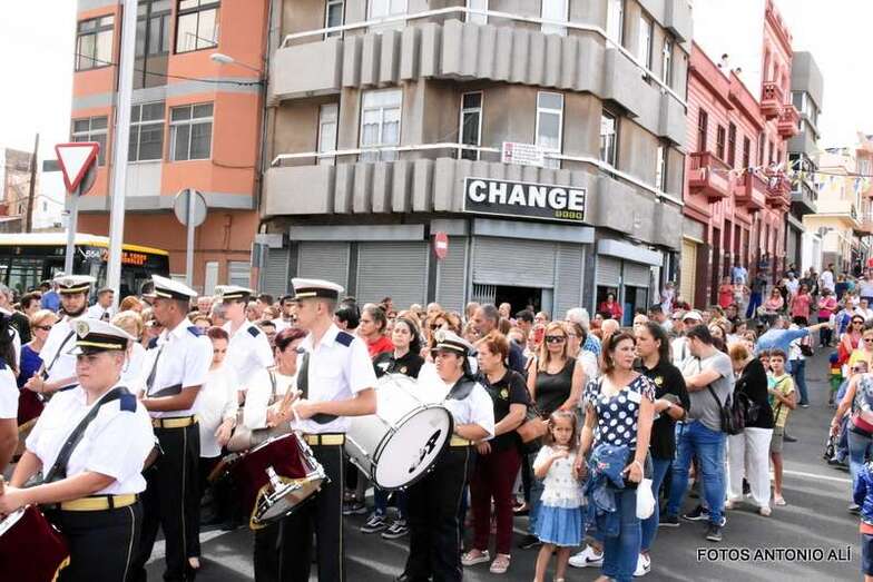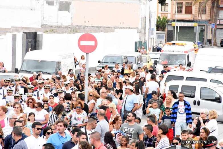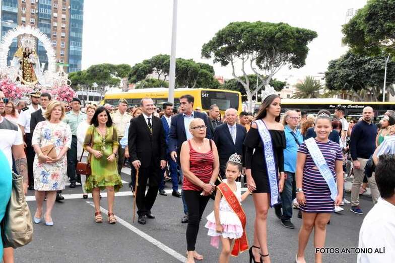 Antes de las 17.00 horas, los alrededores de la parroquia de la calle Benartemi ya se llenaban de fieles que no querían perderse la salida de la imagen, portada por sus costaleros. Una vez en la calle, la Virgen inició el camino que cada primer domingo, tras el día del Carmen, la acerca al Puerto de La Luz para protagonizar el embarque que la lleva a navegar por la bahía de la ciudad, según publica Canarias7.