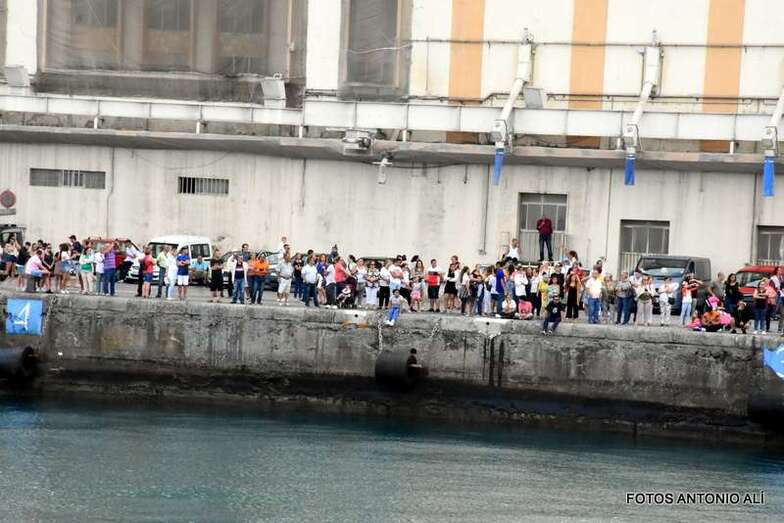 Una vez finalizado el homenaje, la comitiva marinera puso de nuevo rumbo al muelle Primo de Rivera, donde muchos fieles aguardaban el regreso de la imagen para asistir a su desembarque.