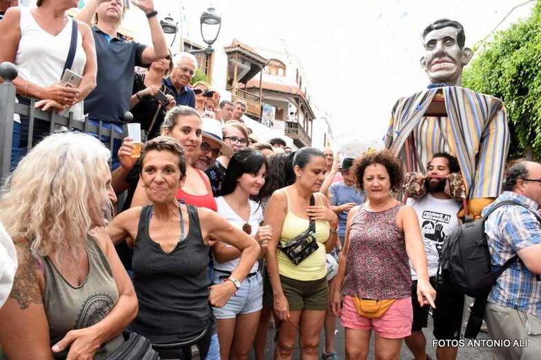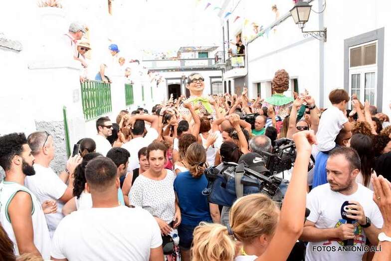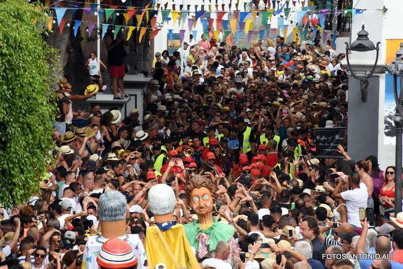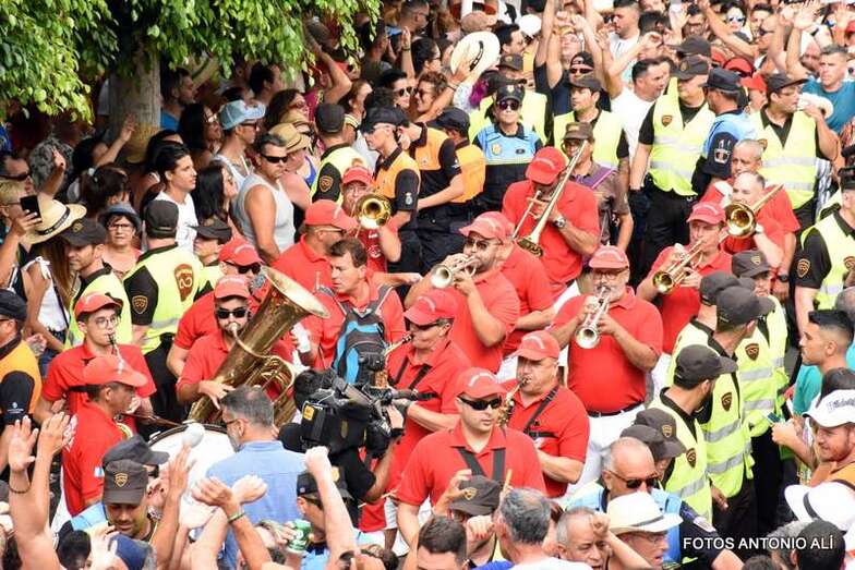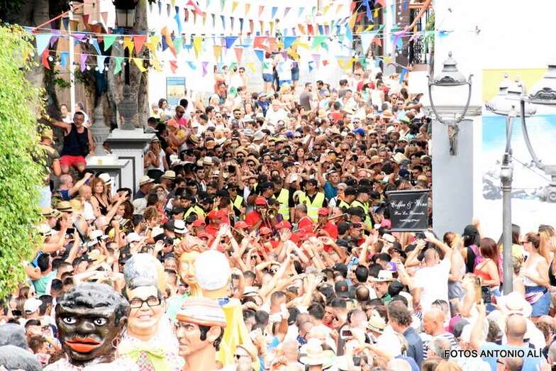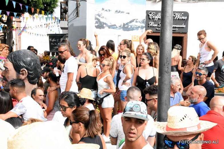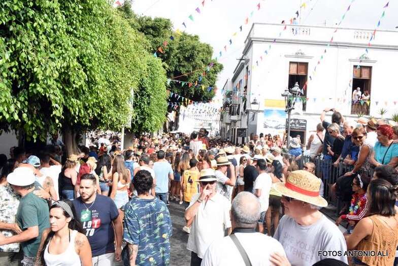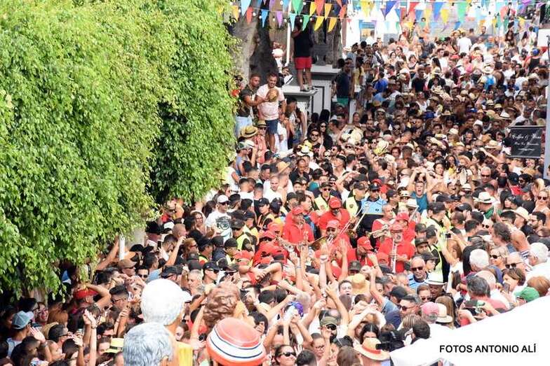 Ella, como miles de visitantes, se agolparon en la plaza de la iglesia de la Concepción para bailar, brincar y divertirse al son de la banda Guayedra y al ritmo que marcaban los tradicionales papagüevos. Con el espacio justo, apelotonados en torno a la banda y subiendo al golpito la calle, fueron desfilando por la calle Concepción rumbo a la búsqueda de las ramas de pino, eucalipto y retama.