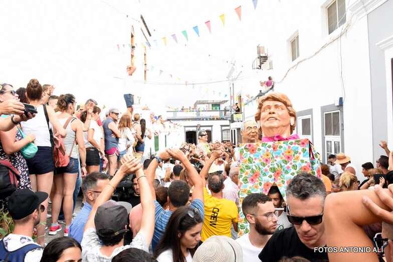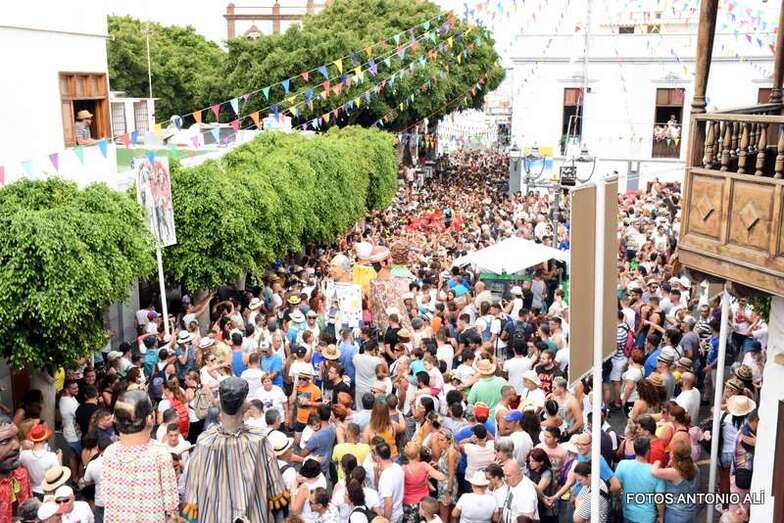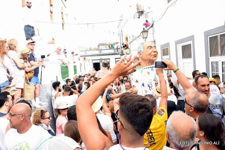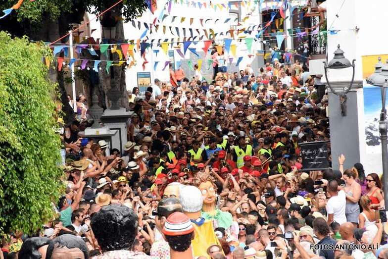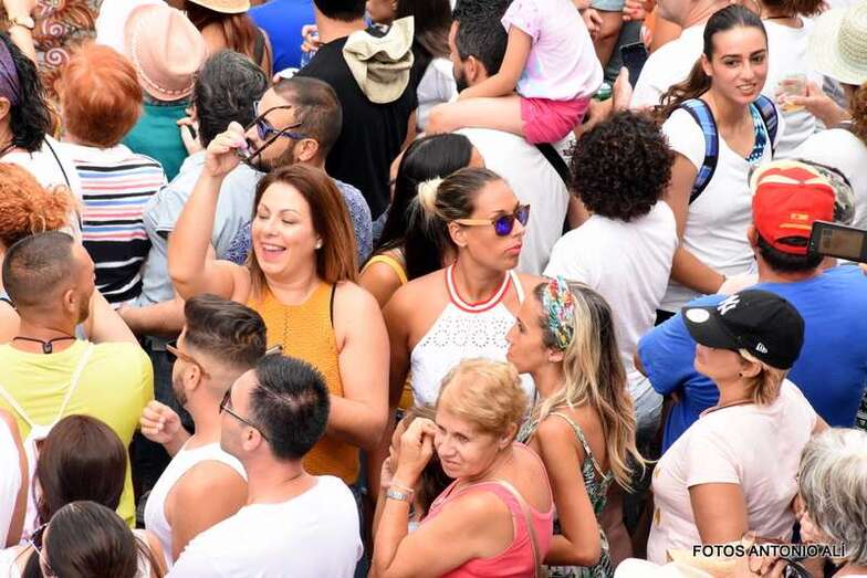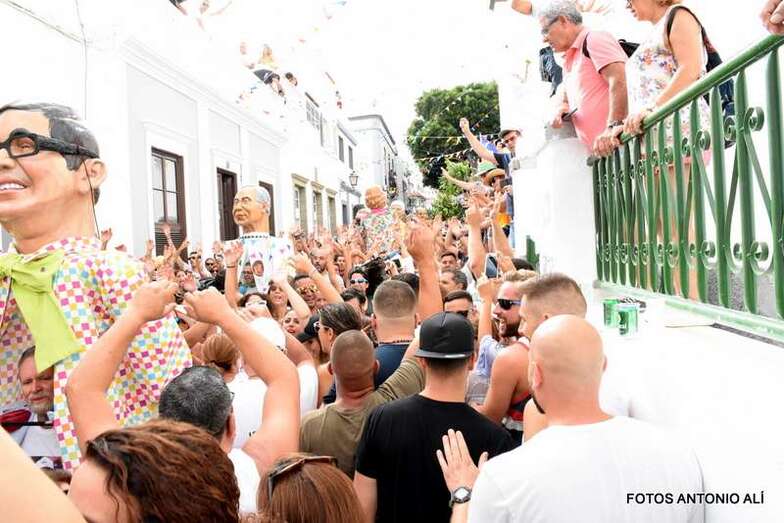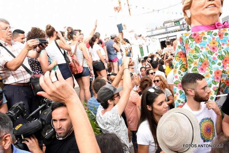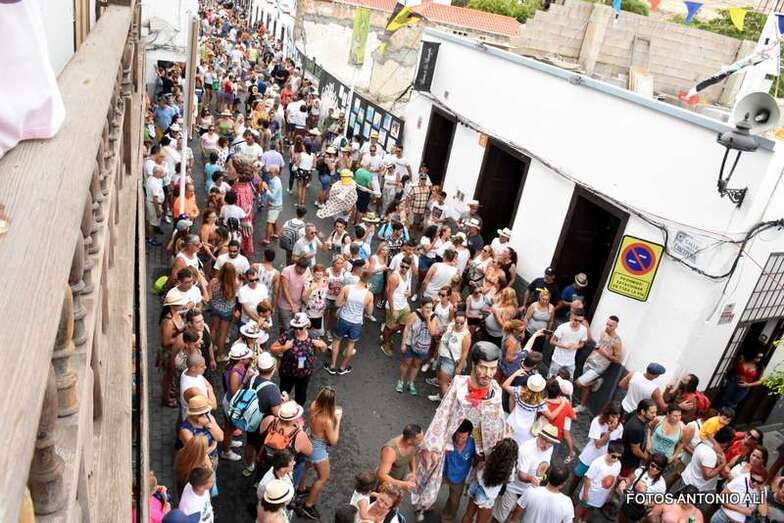 Ella, como miles de visitantes, se agolparon en la plaza de la iglesia de la Concepción para bailar, brincar y divertirse al son de la banda Guayedra y al ritmo que marcaban los tradicionales papagüevos. Con el espacio justo, apelotonados en torno a la banda y subiendo al golpito la calle, fueron desfilando por la calle Concepción rumbo a la búsqueda de las ramas de pino, eucalipto y retama.