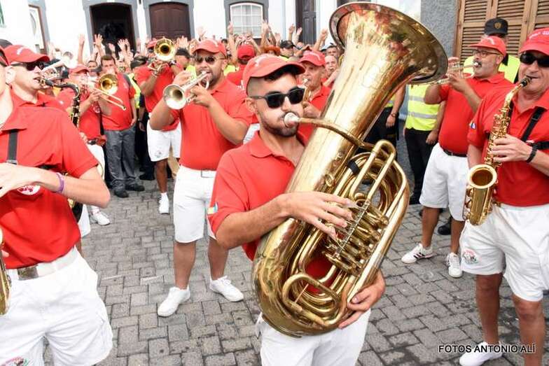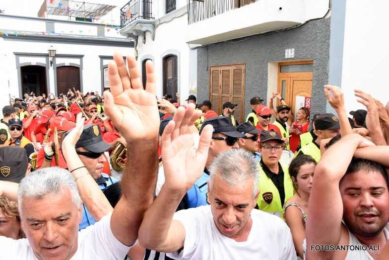 A las 05.00 horas el alcalde de Agaete, Juan Ramón Martín, lanzaba el tradicional volador con el que daba comienzo la Diana que marca el inicio del día grande de las fiestas en honor a la Virgen de Las Nieves. Miles de vecinas, vecinos y visitantes bailaron al son de la Banda de Guayedra dando aviso del inminente comienzo de La Rama al pie de la iglesia de la Concepción.