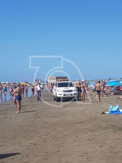 En el momento de redactar esta información, el servicio de vigilancia y salvamento de Cruz Roja ha desalojado la playa, mientras socorristas en motos acuáticas intentan localizar a las tres crías de marrajos.