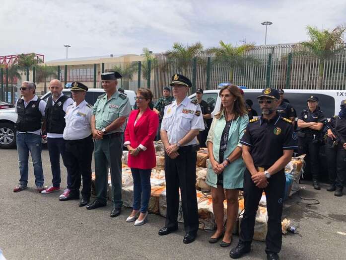 Los titulares de los juzgados número 4 de Vigo y número 4 de Las Palmas han registrado el barco y se ha procedido al desembarco de la droga, distribuida en varios fardos de unos 30 kilogramos cada uno.
