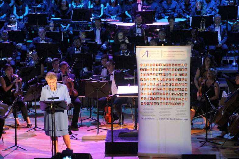 Desde la magnitud de todos los profesionales que estarán en el escenario hasta la fuerza de la presencia de todos los que estamos aquí, haremos posible que les lleguen sus notas musicales hasta donde estén con nuestro inalterable mensaje de amor y recuerdo perenne a cada uno de ellos, que siempre estarán en nuestros corazones. Muchas gracias a todos desde lo más profundo de mi corazón por acompañarnos a ellos y a nosotros”.