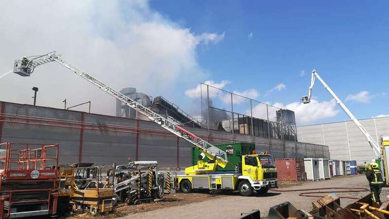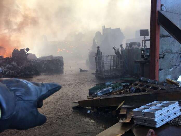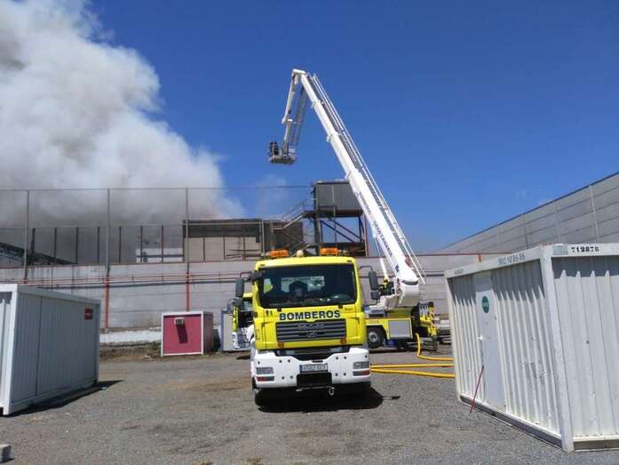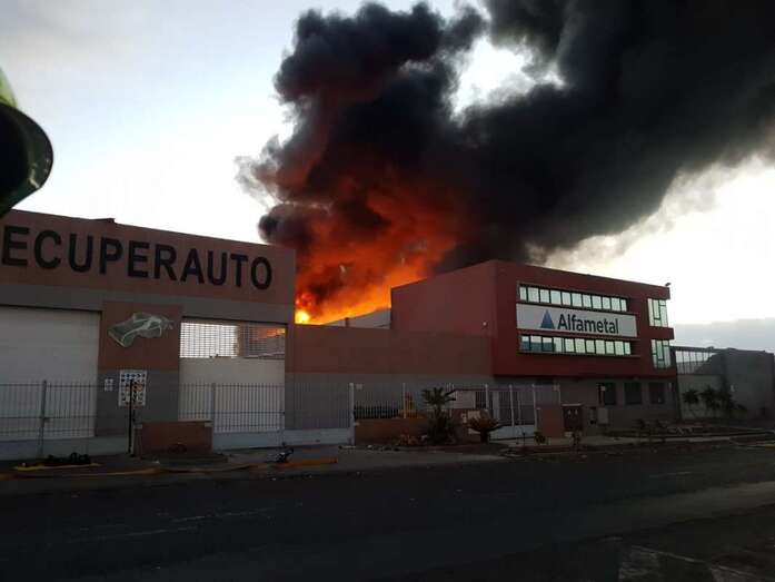 El aviso se realizó sobres las 7 horas de la mañana y se alertó de que había fuego en el interior de la planta recuperadora de metal, donde se sumaron varias explosiones y una intensa columna de humo, según informa el servicio de emergencias 112.