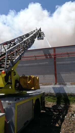 Las Palmas de Gran Canaria (Efe).- Más de una treintena de efectivos de las unidades de emergencias se han desplazado a primera hora de hoy para apagar un incendio declarado en una de las naves del Polígono Industrial de Arinaga, en Agüimes, que ha llenado de humo la zona y que se podía observa a kilómetros.