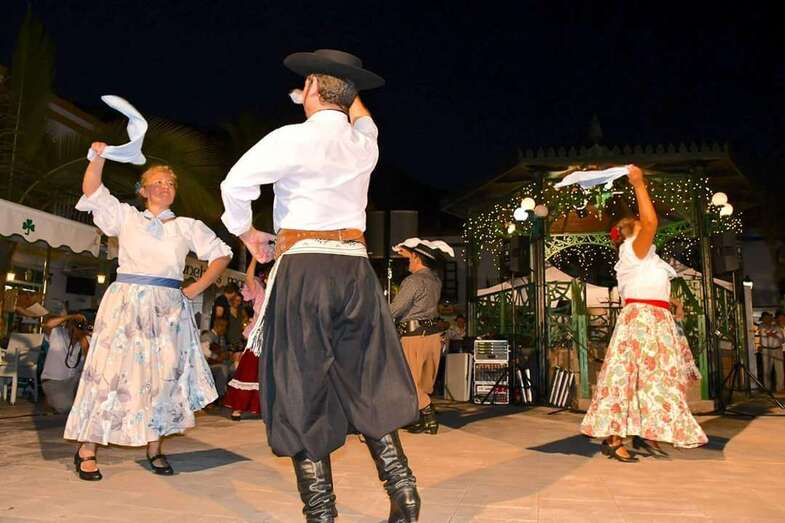 El festival dio comenzó a las 20.30 horas en el Puerto de Mogán con la actuación de la agrupación Nobleza Gaucha, formada en 2009 por iniciativa de dos hermanos con el objetivo de dar a conocer el verdadero folclore tradicional argentino. Desde entonces lo han llevado por toda Gran Canaria, parte del archipiélago canario y la península. Interpretaron las danzas Marote Chaqueño, típica del centro-norte del país y originaria del siglo XVII; Cueca Cuyana, descendiente de la Zamacueca peruana; Chacarera doble, la más popular y difundida; y la Zamba, una danza popular de galanteo.