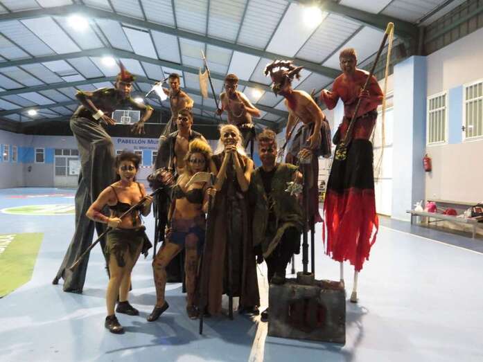Una representación que no cuenta con actores profesionales, sino que son todos vecinos del pueblo que viven con emoción la tradición y así la transmiten al público. A estos se suman el otro centenar que participan diseñando los maquillajes y trabajando en los disfraces de zancudos, malabaristas, jumping, grupos de baile y toda serie de personajes, que han ido su apareciendo durante la representación.