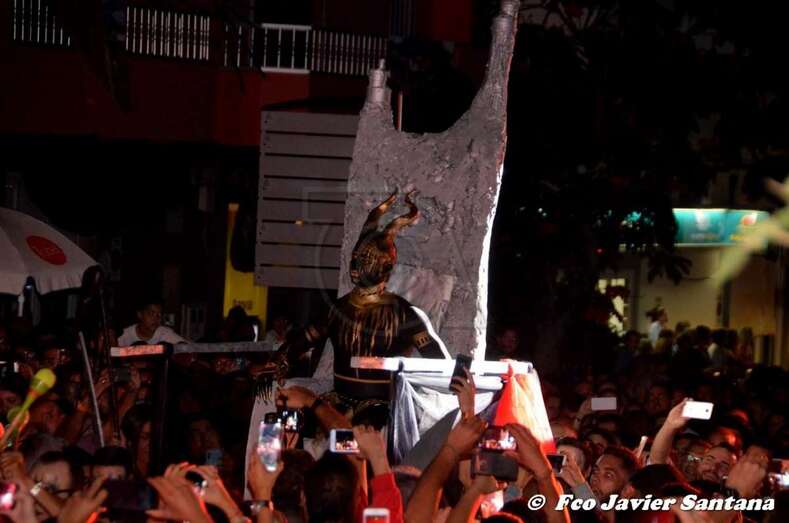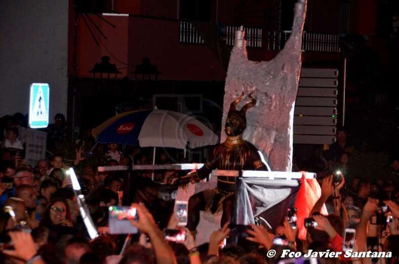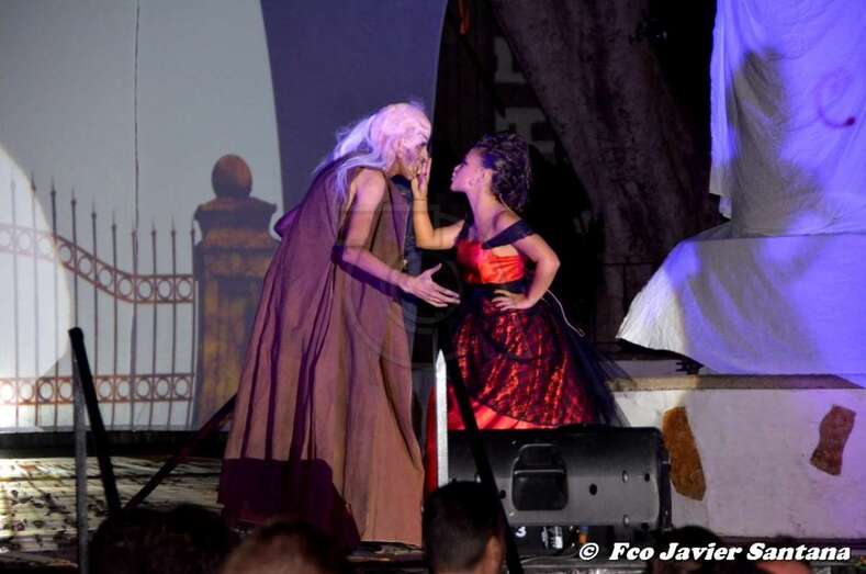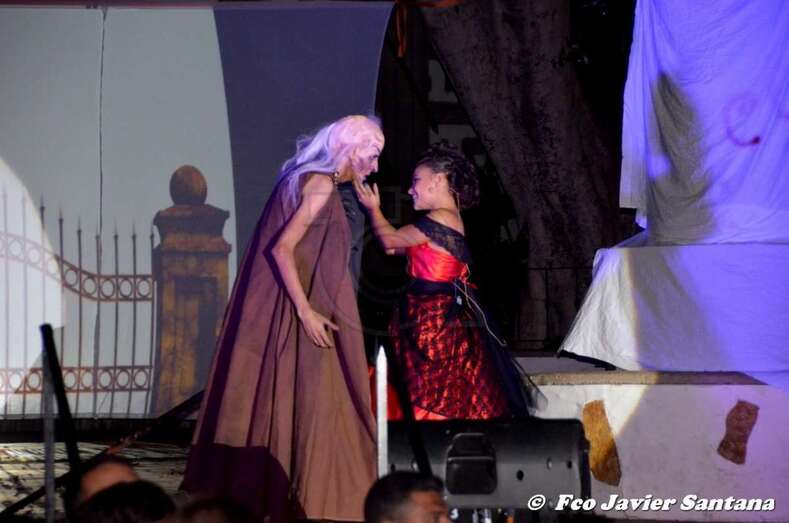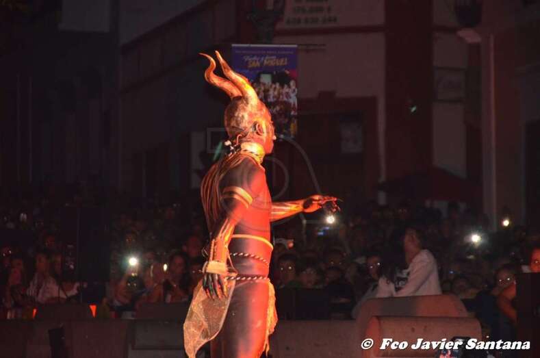 Telde.- Una historia de amor, traición y maldad, mucha maldad es lo que se vivió anoche en la Suelta del Perro Maldito. Un brujo enamorado decide entregar como prueba de su amor a la muerte la extinción de la humanidad, para ello, desencadena al perro maldito que lo traiciona y abre la caja de pandora.