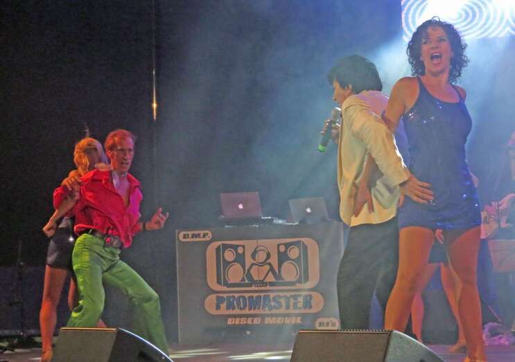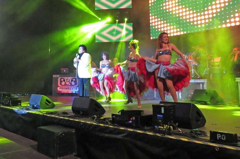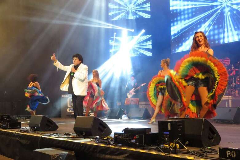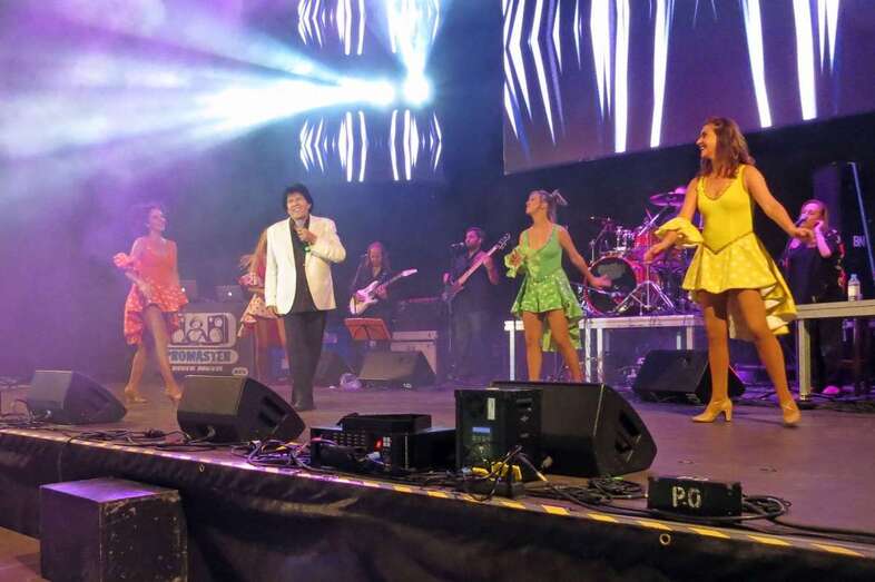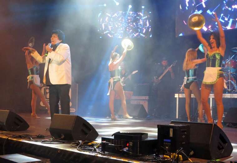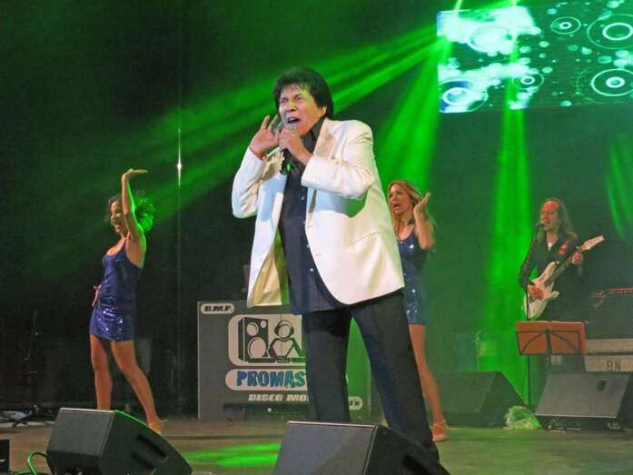 El carisma, la espectacularidad y los pegadizos temas de Georgie Dann maravillaron al público asistente a la Fiesta Guateque, que no paró de tararear y bailar al ritmo de la propuesta musical del mítico rey de la canción del verano.